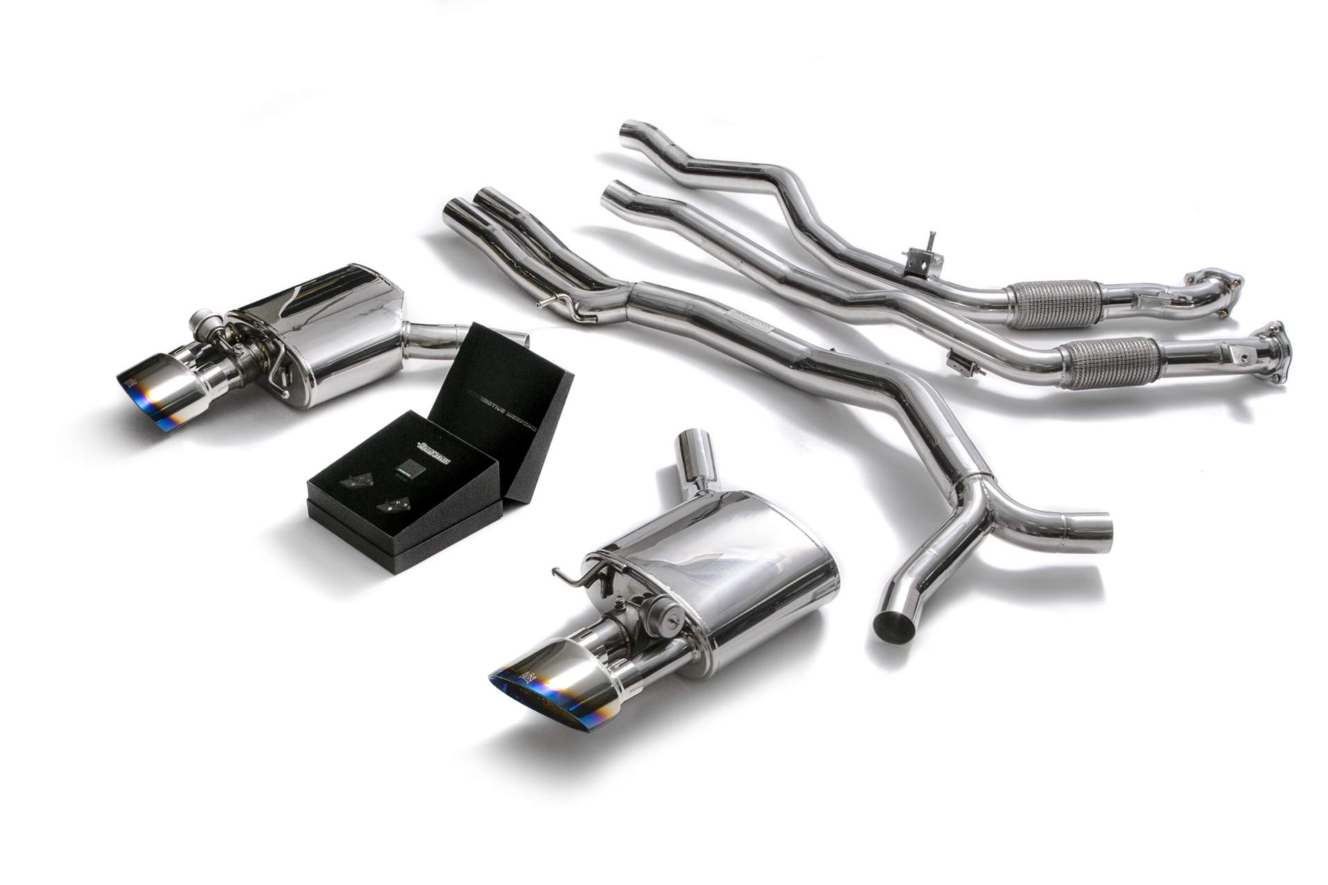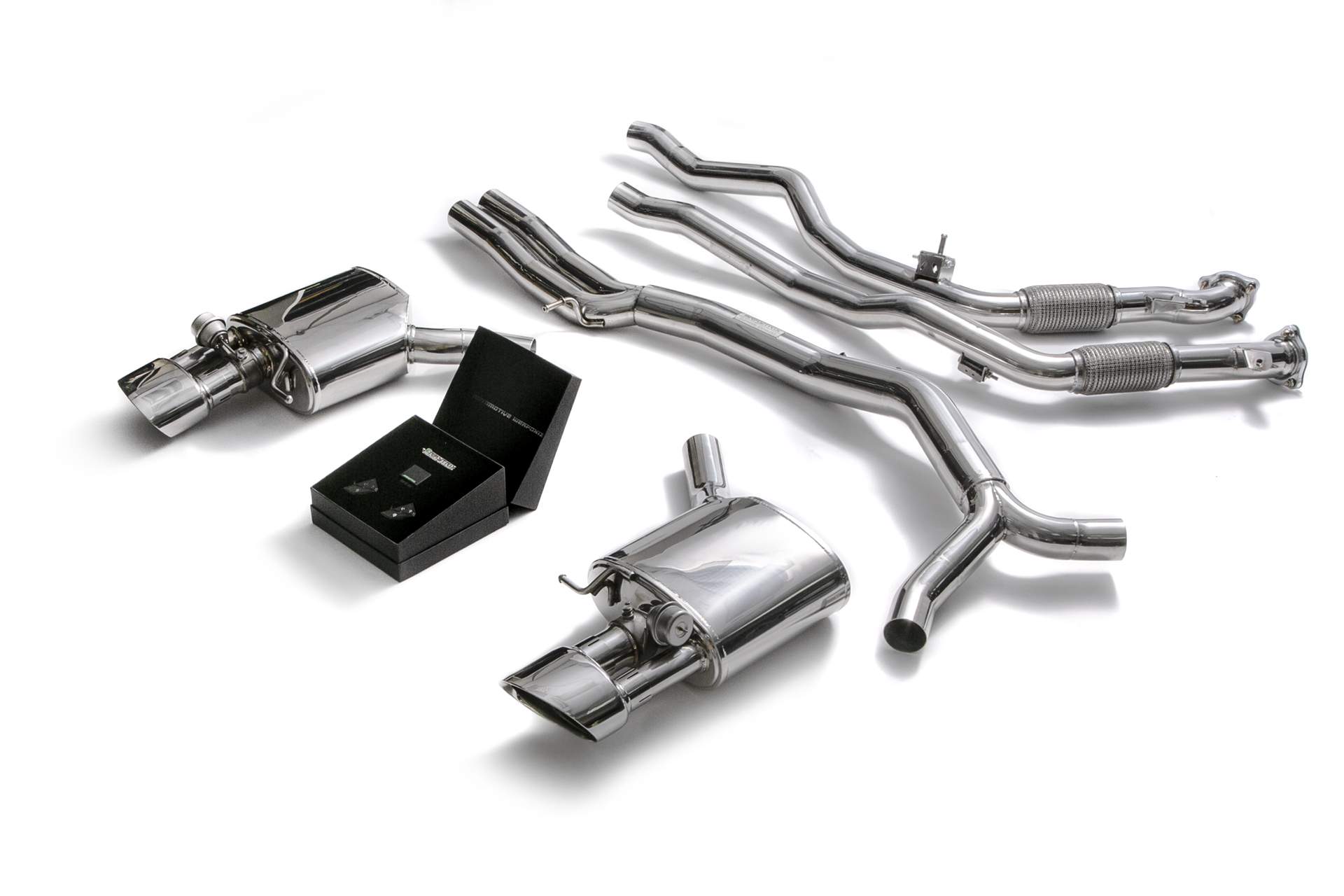 - フロントパイプ + ミッドパイプ + 可変バルブマフラー + リモコンキット + クロームシルバーテールエンド(複数の種類がございます。ご購入の前にご相談ください。)