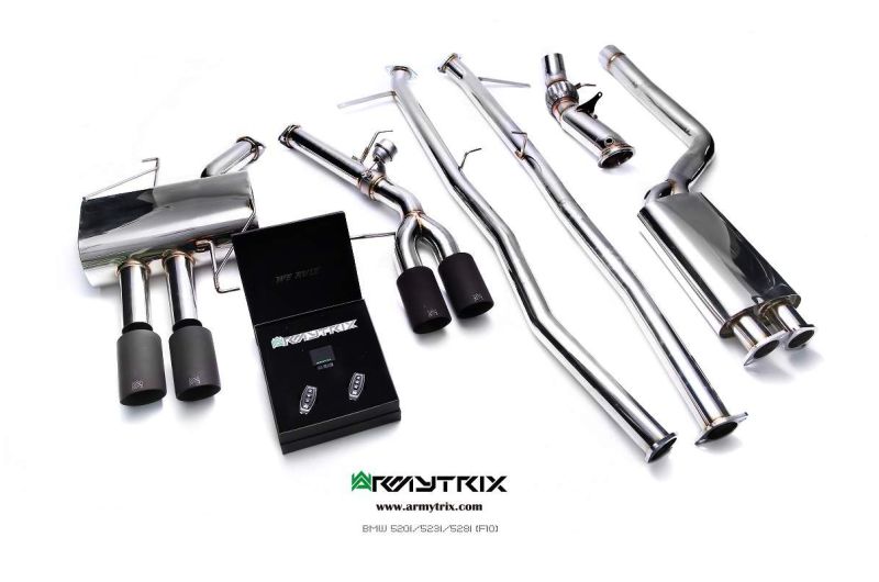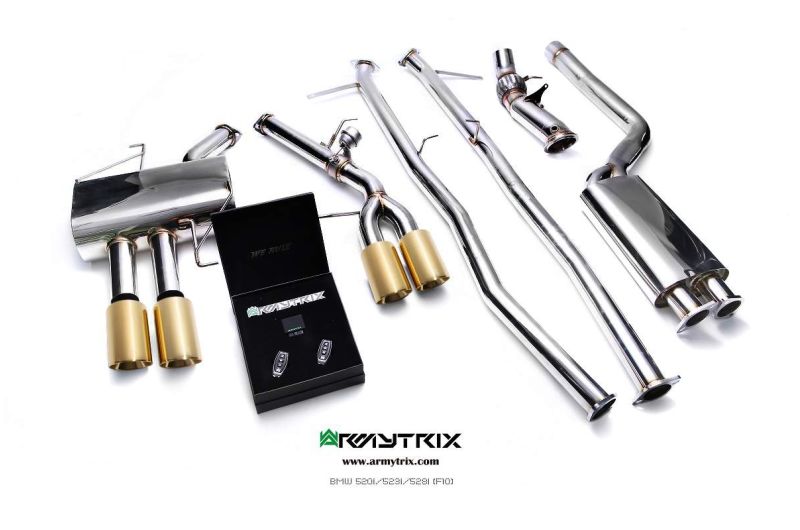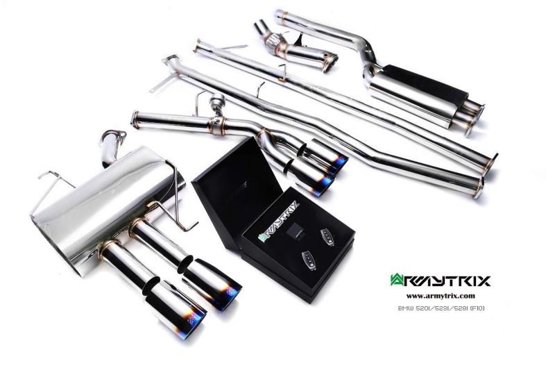 - 左ハンドル車・右ハンドル車の両方に適合します。 バルブ制御にはArmytrix製OBDIIコントロールモジュールが必要です。 4本出しテール仕様マフラーは、F10 M5スタイルの4本出しディフューザーに適合します。 純正触媒や純正マフラーとの接続用のレデューサー(変換アダプター)が付属します。